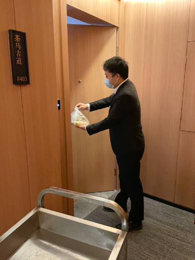 餐饮部做好了餐食,送餐却成了难题。“隔离第一天电梯就停运了,这对我们客房部是很大的困难——因为客房分布在各个楼层,工作车推不上楼,只能靠我们一次次的爬楼梯去给客人送饭”,总助兼销售经理薛仕源虽然平时主要负责协调统筹工作,但他也参与到饭食分发队伍当中:“送餐时还要留心观察客人的情绪,我遇到了一位情绪异常暴躁的客人,当时不断跟客人解释酒店封控原因,还当着他的面跟社区沟通询问封控时间,并保证解封后第一时间通知客人,这样慢慢取得了客人的信任。很开心的是,这个曾经暴躁的客人离店前还特意买了冰淇淋赠送给我们的员工,并表示后续到重庆都会指定住我们酒店。”